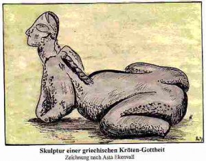 For many first peoples of the Americas, a frog woman guards the fresh waters. In ancient Egypt, the frog goddess Heket breathed life into humans. There is some evidence that Baubo of ancient Greece, as well as the Sheela na Gigs of Ireland and the British isles, are descended from an ancient frog goddess, symbol of birth, death, and rebirth. In the burning times, the christian church associated toads with evil witchcraft. As recently as the nineteenth century, women in Europe offered frog votives for the birth of a healthy baby.