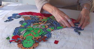 At work on the Green Tara Thangka