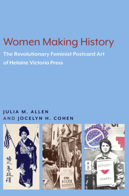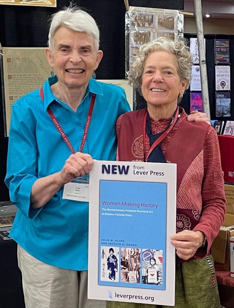 Julia and Jocelyn’s book, Women Making History: The Revolutionary Feminist Postcard Art of Helaine Victoria Press (2023), is the first book to demonstrate the relationships between the feminist art movement, the women in print movement, and the scholars studying women’s history. It is available from Lever Press, which is funded by a consortium of small liberal arts colleges, and dedicated to the principle of open access, but also offers print editions of their books. Read it and see many archived images here.