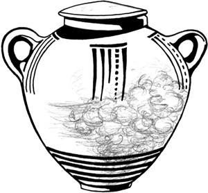 Drawing © S. Beaulieu, after photograph online at www.britishmuseum.org/ under title “A vessel for sacrificial ashes.”
