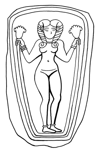 Occasionally I have been involved in scholarly arguments about not only the identity of these pillar figurines, but also whether or not they were goddesses at all. Many scholars have dismissed them as “fertility fetishes,” “amulets,” and such. The figurines cannot, they insist, be images of a goddess, because, among other things, they were found broken up in garbage dumps. However, not all of them were broken, and very few, if any, were found in what had been an ancient dump.