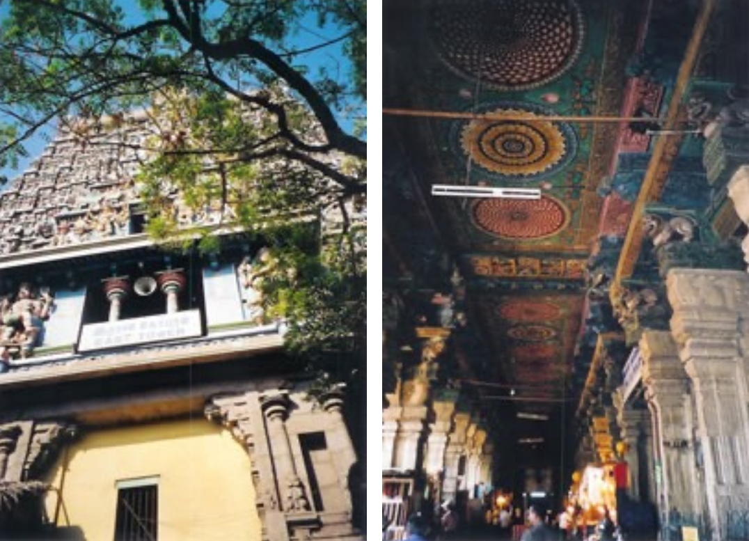 (left to right, first) The entrance to the shrine of the goddess’s consort Sundareshwara (Shiva).