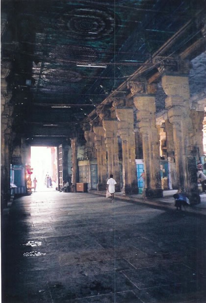 (left) Entrance to Meenakshi’s shrine, with devotees.