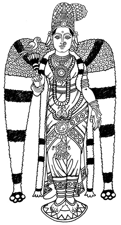 Composite drawing © 2009 S. Beaulieu, after several images of Meenakshi.